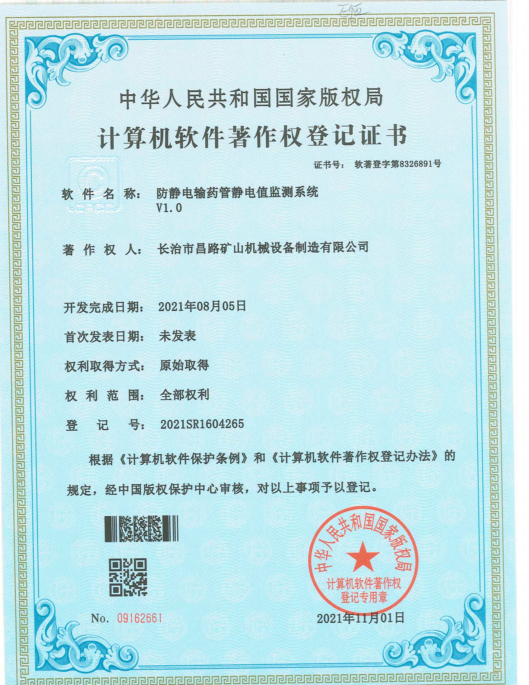 我公司取得軟件著作權登記證書